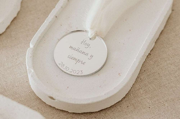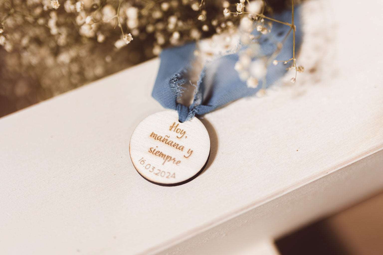 La medalla tiene un grosor de 5mm (madera) y de 3mm (metacrilato) y 4,5 cm de diámetro. Es perfecta para lucirla y llevarla contigo.