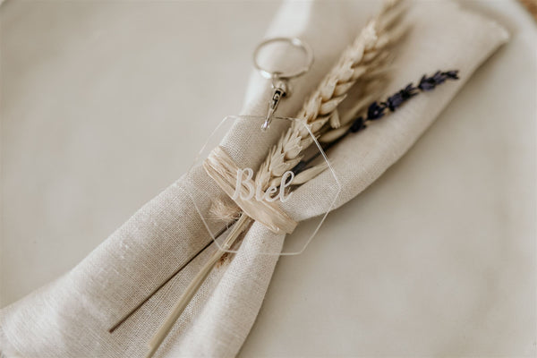 También tienes la opción de añadirle el llavero por 0,50 cts cada uno, para que tus invitados siempre lleven el recuerdo con ellos.