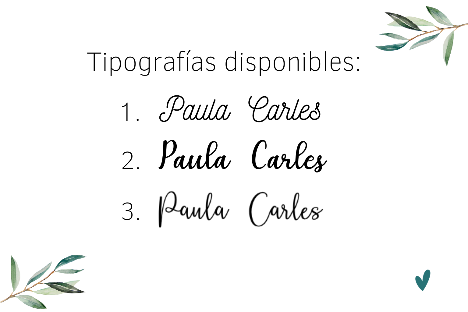 Solo tienes que elegir entre las tres tipografías que te proponemos y adjuntarnos una lista con los nombres o apodos que necesites.