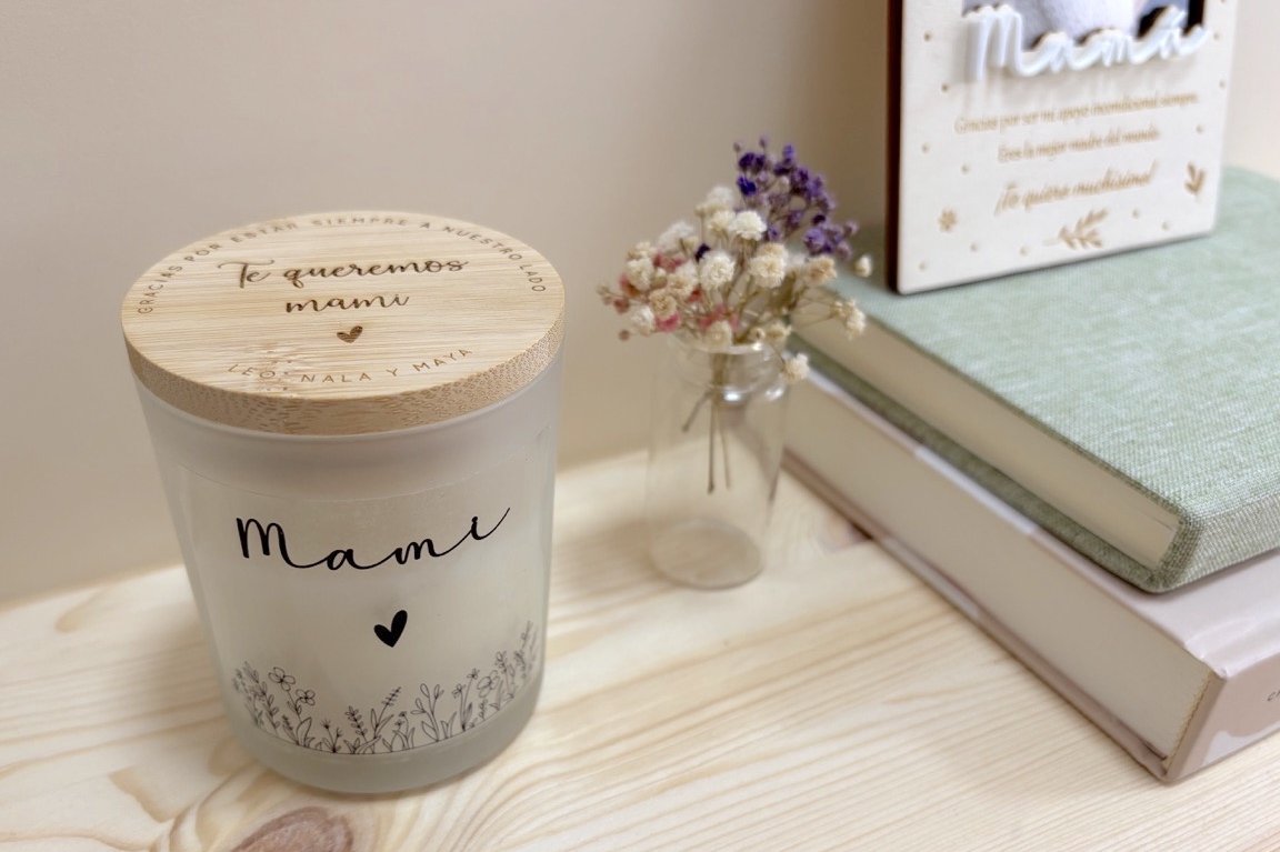 Esta vela con aroma a vainilla, lleva una la tapa de bambú personalizada y una etiqueta transparente con la palabra que escojas personalizada. La frase es sólo un ejemplo, puedes poner la que tu quieras :)