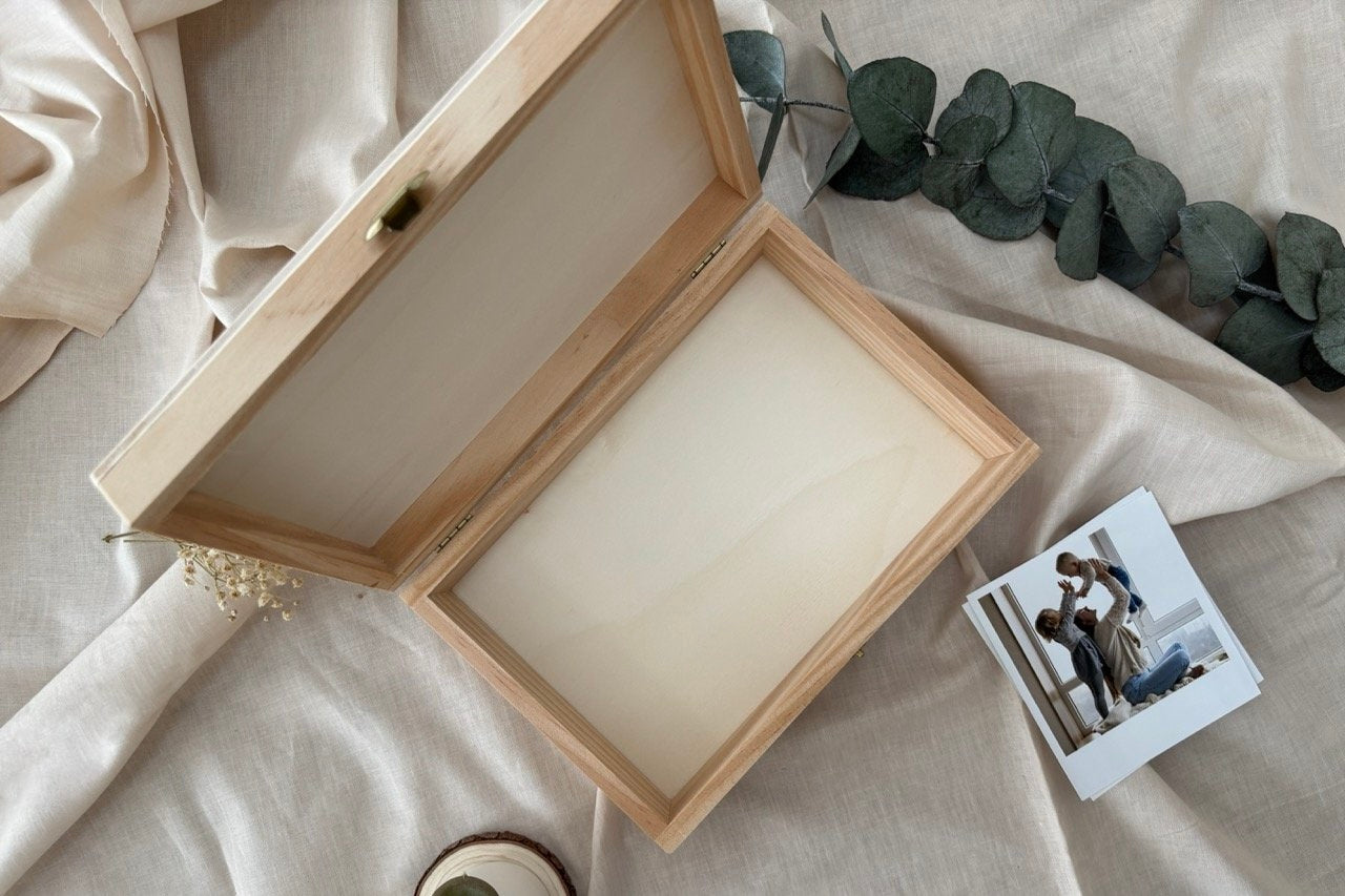 IMPORTANTE: Sólo se incluye la caja de madera personalizada vacía, el resto de elementos que aparecen en la fotografía del producto son decoración.