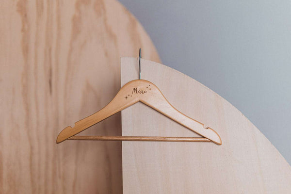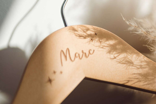 Pensamos en los pequeños detalles y personalizamos tu percha grabada por delante con el nombre que quieras.