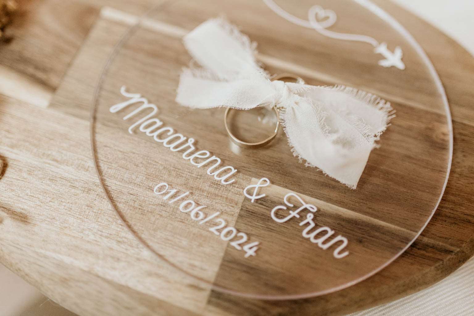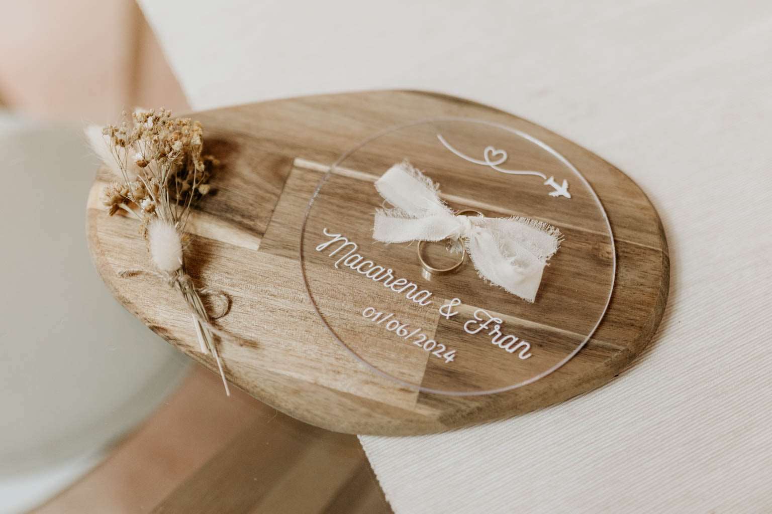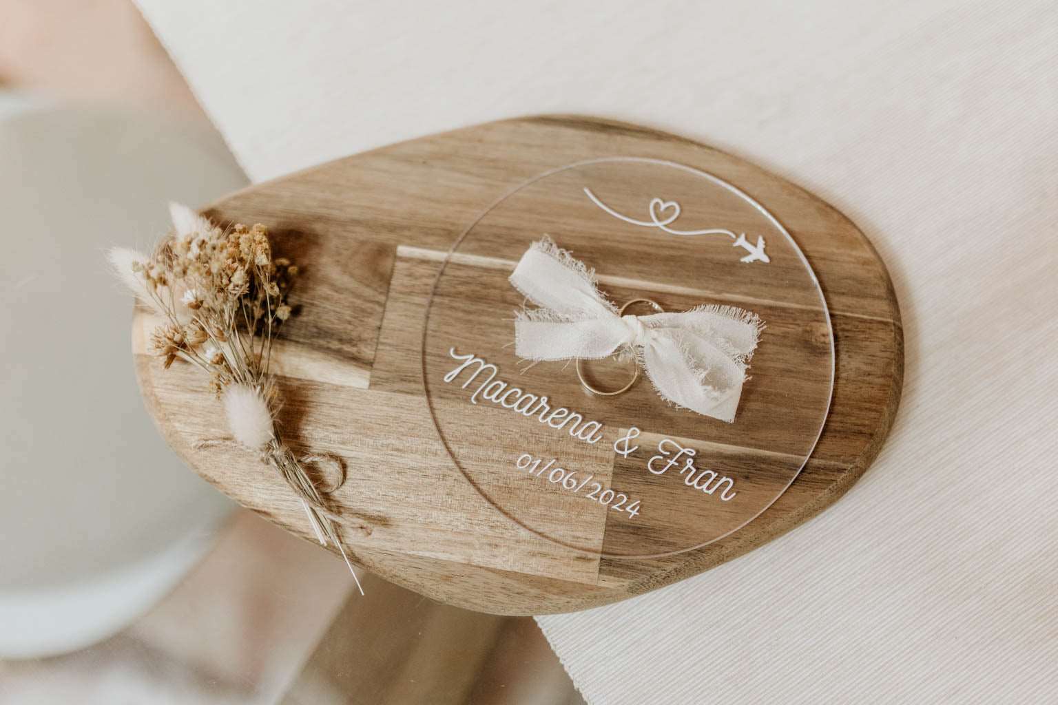 Importante: Sólo se incluye el porta alianzas, la tabla y el ramillete es decoración.