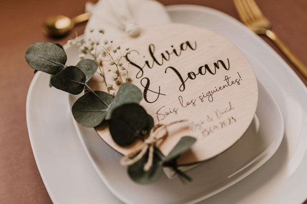 Grabaremos su nombre con el mimo que se merece, y los vuestros con la fecha de vuestro enlace para que recuerden siempre este regalo tan especial. Crearéis un momento mágico. Además les regalaréis una placa decorativa que querrán colgar en todos los rincones de su hogar.