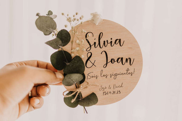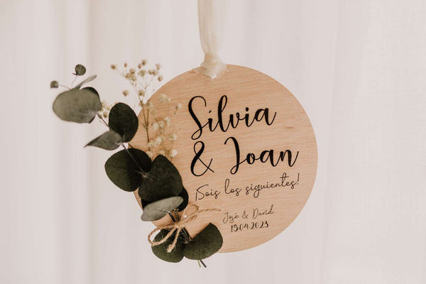 Placa madera ¡Sois los siguientes! - Sencilla con ramillete