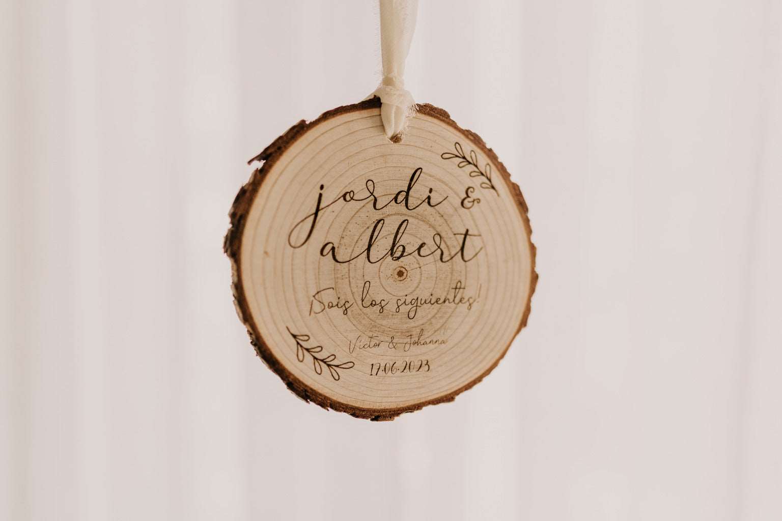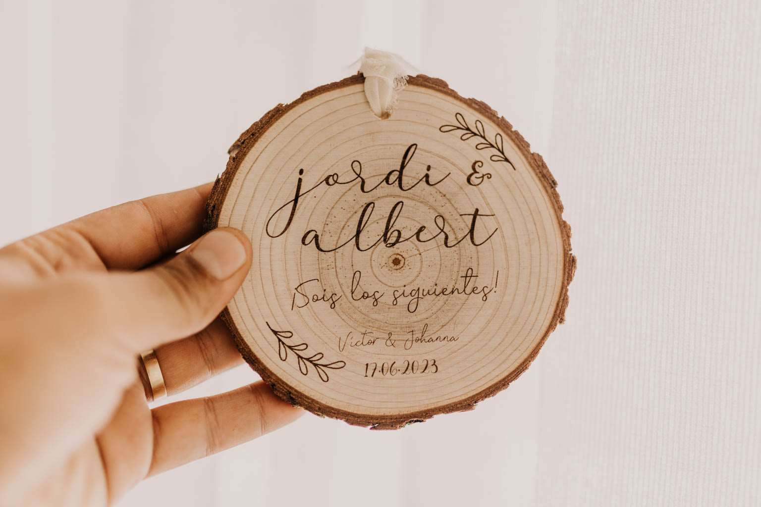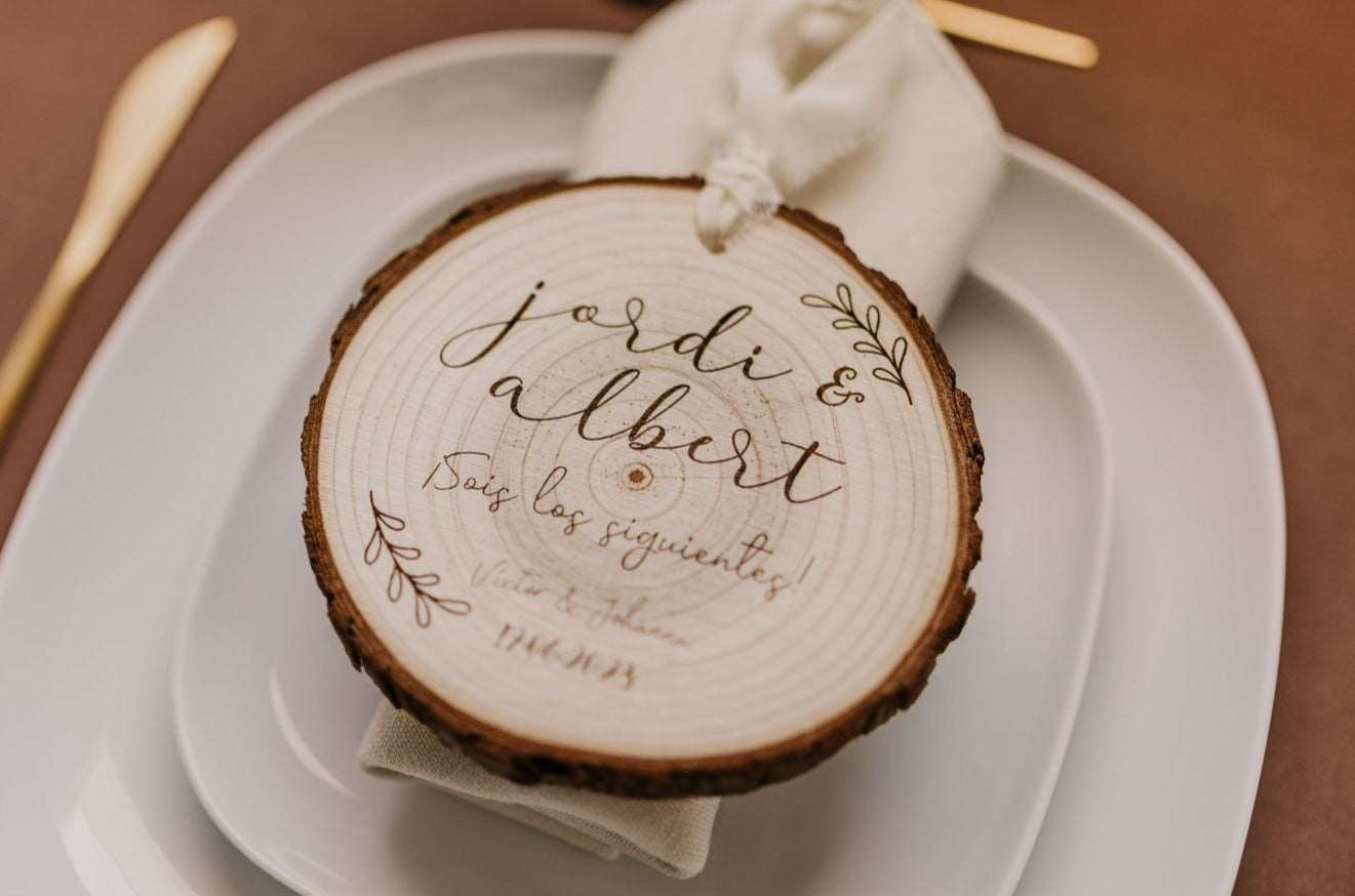 Grabaremos su nombre con el mimo que se merece, y los vuestros con la fecha de vuestro enlace para que recuerden siempre este regalo tan especial. Crearéis un momento mágico. Además les regalaréis una placa decorativa que querrán colgar en todos los rincones de su hogar.