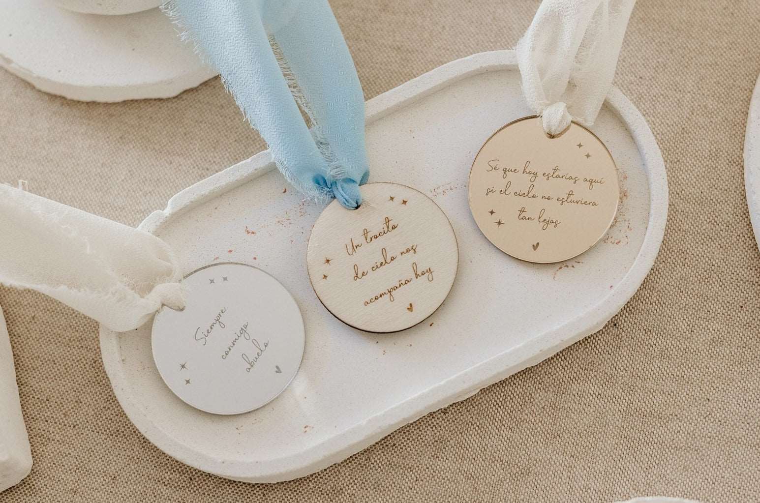 En la placa podrás poner lo que tu quieras, el texto que aparece en la imagen es sólo un ejemplo, lo personalizaremos para ti :)